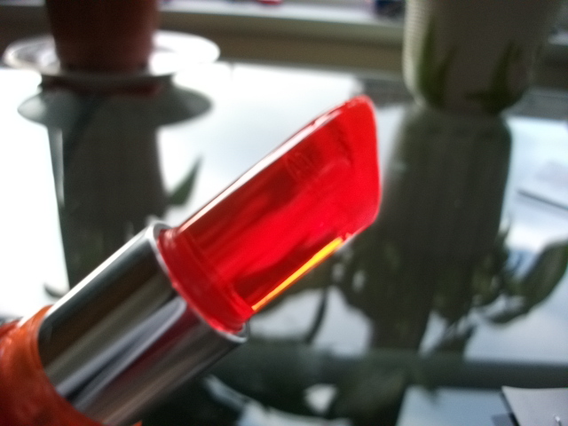 It looks red in the photo, but its bright orange in reality. I know, my camera sucks.