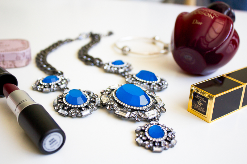 Zara Necklace// Dior Hypnotic Poison// Mac Dark Side// Tom Ford Spanish Pink// Lip Balm c/o Sabon// Pandora Bracellet.