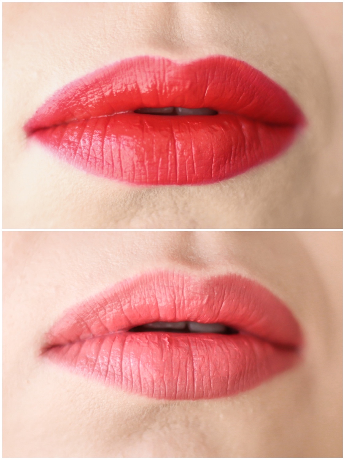 Which brings me to today’s review – the Collistar Unico Lipstick. I got sent two of the shades out of the eighteen available: No 7 Pompelmo Rosa and No 12 Scarlatto.