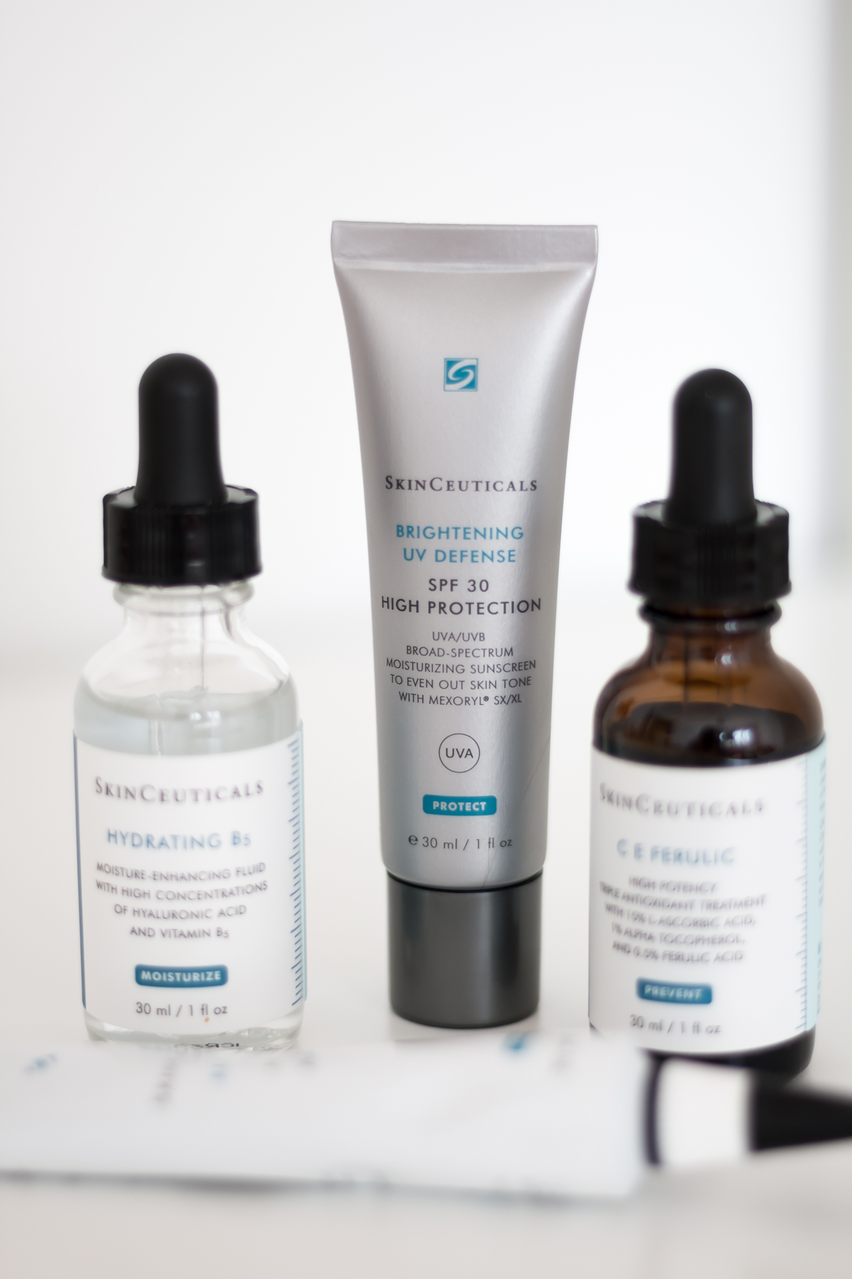 The C E Ferulic Serum worked brilliantly in the mornings to brighten my skin and fight oxidative damage. My skin is noticeable brighter and the texture refined. I love using the UV Defense underneath my makeup, it feels lightweight and leaves my skin prepped for foundation.