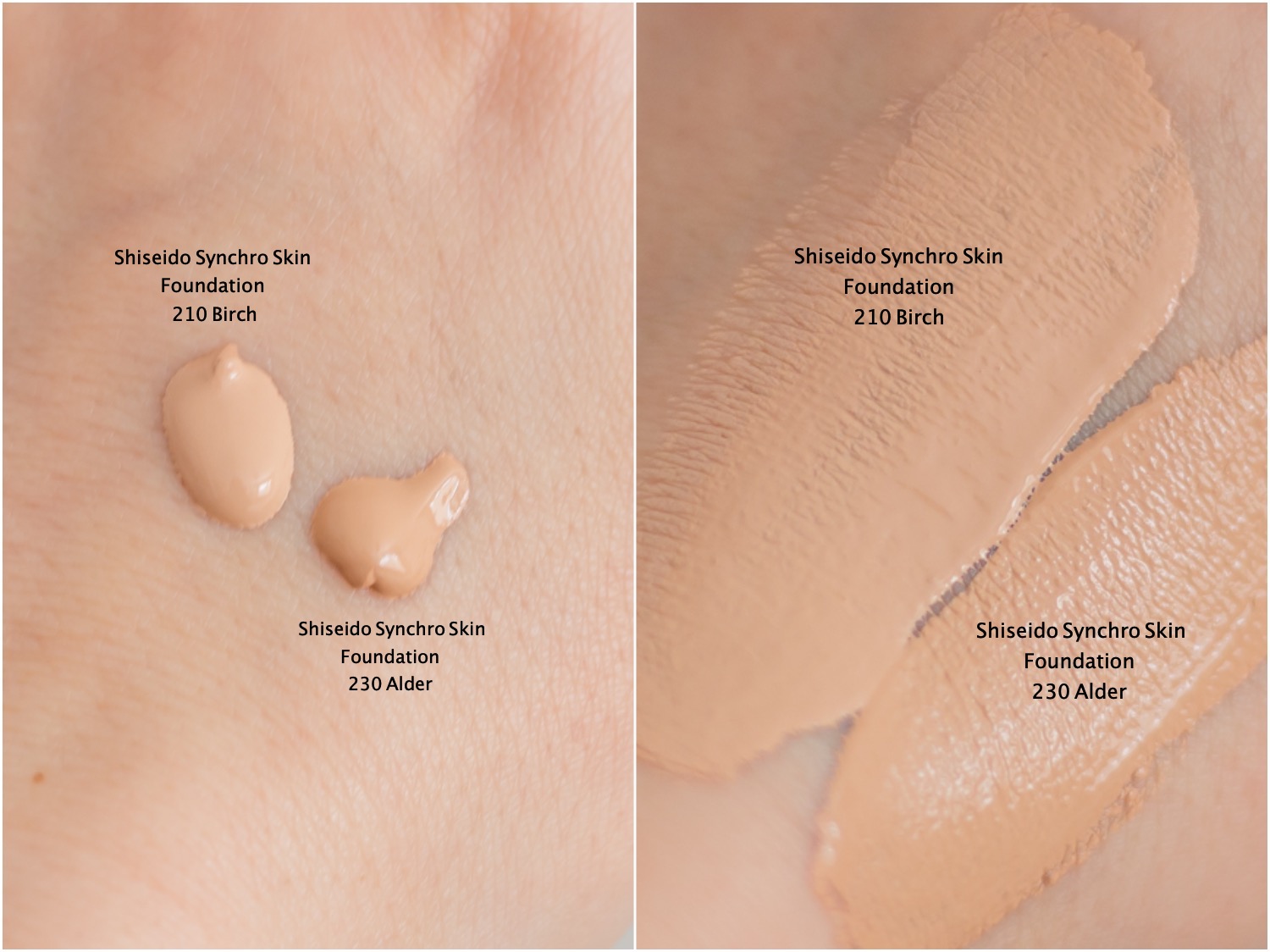 Shiseido Synchro Skin Self Refreshing Foundation Swatches of 210 Birch and 230 Adler